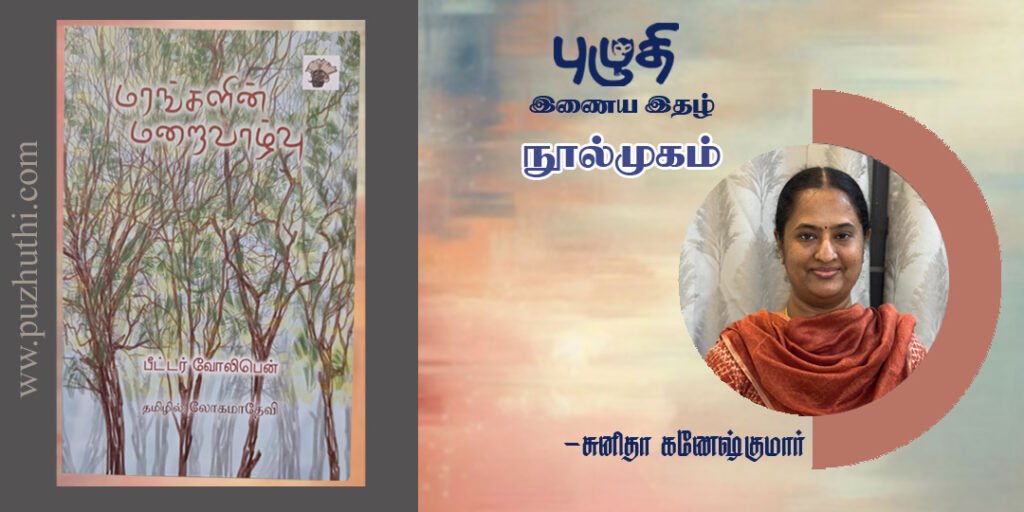 இந்த புத்தகம் பீட்டர் வோலிபென் என்ற ஜெர்மானிய வானியலாளர் இயற்றிய நூல். தன்னுடைய வாழ்நாளில் காட்டில் மரங்களுடன் தாவரங்களுடனுமே வாழ்ந்து அவைகளை அவதானித்து இயற்கையின் தொடர் சங்கிலியை புரிந்து கொண்டு எழுதிய அற்புதமான புத்தகம். “The hidden life of trees” என்ற ஆங்கில புத்தகத்தின் தமிழ் மொழியாக்கம். லோகமாதேவி என்ற தாவரவியாளர் மிக அற்புதமாக மொழிப்பெயர்த்து தந்திருக்கிறார். இந்த புத்தகத்தின் கூடுதல் சுவாரசியம், ஏதோ காடுகளை பற்றியும் காட்டு மரங்களைப் பற்றியும் படித்துக் கொண்டிருக்கிறோம் என்ற எண்ணத்தை மட்டுமே கொண்டிராமல் தன் பிள்ளைகளின் கதைகளை சொல்வது போல் பீட்டர் வோலிபென் கூறுவது மிக அற்புதமான வாசிப்பனுபவமாக இருக்கிறது.